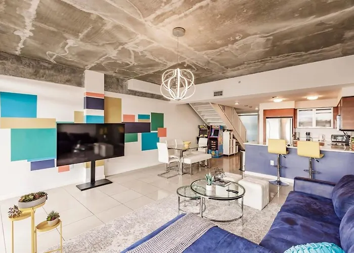 L'appartement ces propriétés Hang Ten- Large Townhome lux amenities parking Miami de 102 m² est situé à Miami à 18 minutes de marche des murs Wynwood, et offre à ses clients une piscine et un centre de fitness. L'appartement se trouve à proximité du Miami Design, dans le quartier Design.